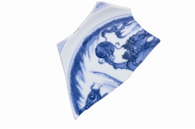 由此可見(jiàn),這幅瓷畫中的“鯉魚”與“蒼龍”,是分別借鑒明代紋樣樣式,組合而成一個(gè)新瓷畫品種。明代時(shí),“鯉魚”和“蒼龍”一個(gè)應(yīng)用于民窯,一個(gè)應(yīng)用于官窯,一般不會(huì)處在同一幅瓷畫之中。清代對(duì)龍紋的禁用尺度放寬了,四爪以下的龍紋允許民間使用,才有可能出現(xiàn)魚龍同框的現(xiàn)象。