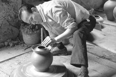 梁先才在制作榮昌陶代表作——泡菜壇