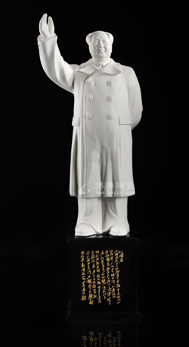 德化白瓷,享譽(yù)世界,在世界陶瓷史上“中國(guó)白”成為德化白瓷的代名詞,被譽(yù)為“世界白瓷之母”。作品以德化溫潤(rùn)如玉的“中國(guó)白”為胎質(zhì),手工制作,通過瓷塑再現(xiàn)偉人毛澤東的風(fēng)采,表達(dá)對(duì)偉人的一種崇敬、緬懷之意。作品從衣領(lǐng)的厚度到臉部的肌肉、神態(tài),衣紋褶皺、紐扣都精心塑造,具有很高的欣賞價(jià)值與收藏價(jià)值。德化白瓷,享譽(yù)世界,在世界陶瓷史上“中國(guó)白”成為德化白瓷的代名詞,被譽(yù)為“世界白瓷之母”。作品以德化溫潤(rùn)如玉的“中國(guó)白”為胎質(zhì),手工制作,通過瓷塑再現(xiàn)偉人毛澤東的風(fēng)采,表達(dá)對(duì)偉人的一種崇敬、緬懷之意。作品從衣領(lǐng)的厚度到臉部的肌肉、神態(tài),衣紋褶皺、紐扣都精心塑造,具有很高的欣賞價(jià)值與收藏價(jià)值。