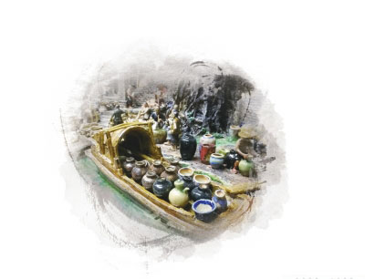 另外,作品分布著18間房屋和兩艘小船,小船停靠于東平河邊,一艘運(yùn)柴,另一艘運(yùn)瓦缸。中部最高位置是南風(fēng)古灶,郁郁蔥蔥的大榕樹下,工人們正在燒窯。為豐富作品畫面,黃焯南還在不同的位置點(diǎn)綴了24只精致的小動(dòng)物,河面上的鴨子、房間內(nèi)的小貓、看門的土狗,整個(gè)畫面充滿著濃郁的嶺南生活氣息。