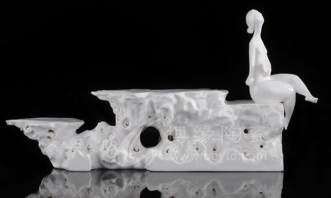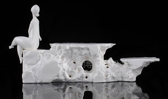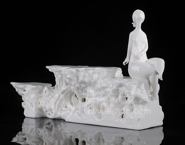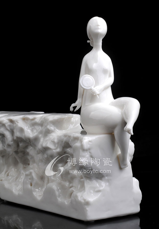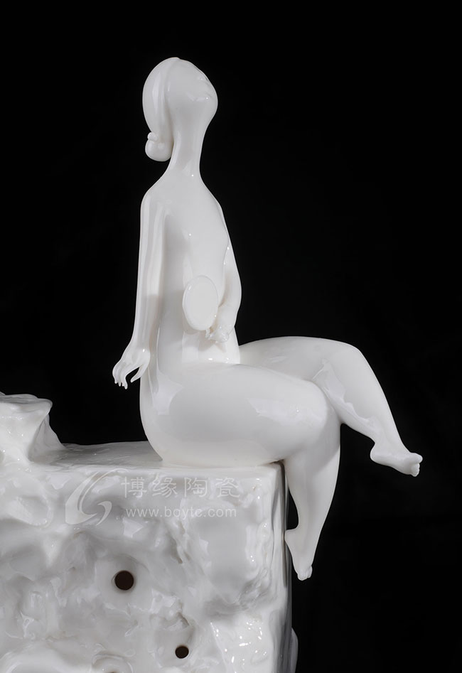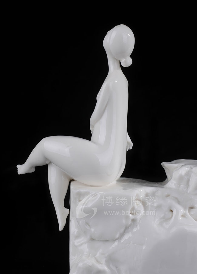 作品《思無(wú)邪》以德化特有的溫潤(rùn)如玉的“中國(guó)白 ”為胎質(zhì),純手工制作,所塑人物神態(tài)逼真,造型優(yōu)美;作品中女子坐在如明鏡般的高臺(tái)上,手持扇子,靜心思考,優(yōu)雅自然;作品創(chuàng)作突破傳統(tǒng)、做工精細(xì)、意境美好,被國(guó)家博物館永久收藏。