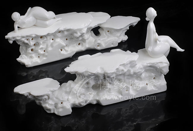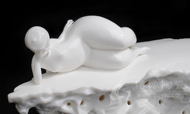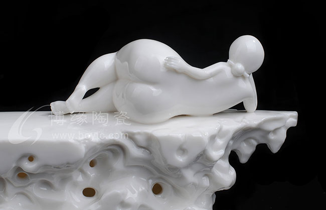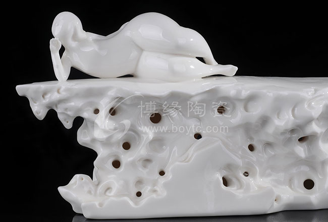 作品制作精細(xì),質(zhì)地堅(jiān)密,晶瑩如玉,釉面滋潤(rùn)似脂。