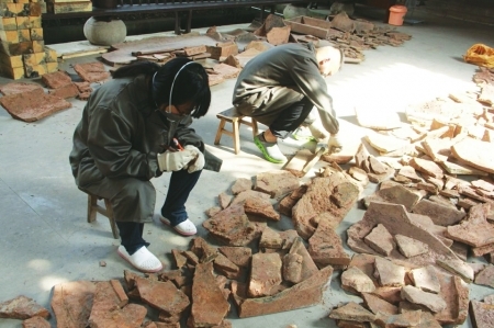 因?yàn)闂l件有限,合江陶棺的修復(fù)工作只能在室外進(jìn)行,炎熱的夏天、潮濕的雨季、蚊蟲的叮咬、昏暗的光線都給修復(fù)工作增加了許多困難。曹元元告訴記者,那個(gè)時(shí)候只有一臺(tái)老工業(yè)電扇,身邊總是飛著長著翅膀的大蟑螂,對(duì)于一個(gè)20多歲的女孩子而言,環(huán)境的艱苦是不言而喻的。更何況這樣的時(shí)光持續(xù)了幾百個(gè)日夜。“但是為了中華民族祖先留下的文物瑰寶不要滅失在我們手中,讓它繼續(xù)發(fā)揮應(yīng)有的文物價(jià)值、歷史價(jià)值、藝術(shù)價(jià)值,受再多的累也值”,曹元元介紹,此次保護(hù)修復(fù)后的陶棺成為合江縣和瀘州地區(qū)第一口完整的陶棺,對(duì)研究漢代時(shí)期喪葬制度及陶質(zhì)燒制工藝提供了實(shí)物佐證,更為我們今后對(duì)此類型大型文物的保護(hù)修復(fù)積累了寶貴的經(jīng)驗(yàn)。