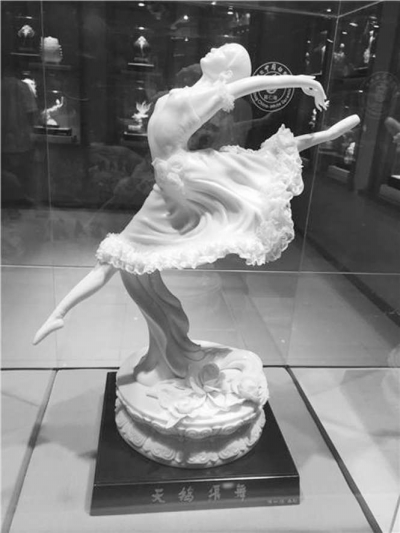 中國(guó)白藝術(shù)宮內(nèi)不僅有國(guó)宴瓷和國(guó)禮瓷,還陳列著陳仁海創(chuàng)作的600多件專利紀(jì)念瓷,牽著名犬的貴婦、憨態(tài)可掬的歡喜佛、正義凜然的關(guān)二爺、姿態(tài)優(yōu)美的舞者……就連舞者舞裙上的蕾絲都清晰可見(jiàn),層層疊疊,每一個(gè)細(xì)節(jié)都清晰可見(jiàn)。據(jù)中國(guó)白藝術(shù)宮工作人員表示,如今的陶瓷燒制主要都是靠電來(lái)控制精準(zhǔn)度,例如這尊“天鵝飛舞”,它是一體燒制,由于蕾絲部分薄如蟬翼,比較脆弱,需要先用低溫?zé)仆瓿珊螅儆酶邷責(zé)浦黧w部分。每一個(gè)細(xì)節(jié)都需要精準(zhǔn),一個(gè)不慎可能就需要重新制作。