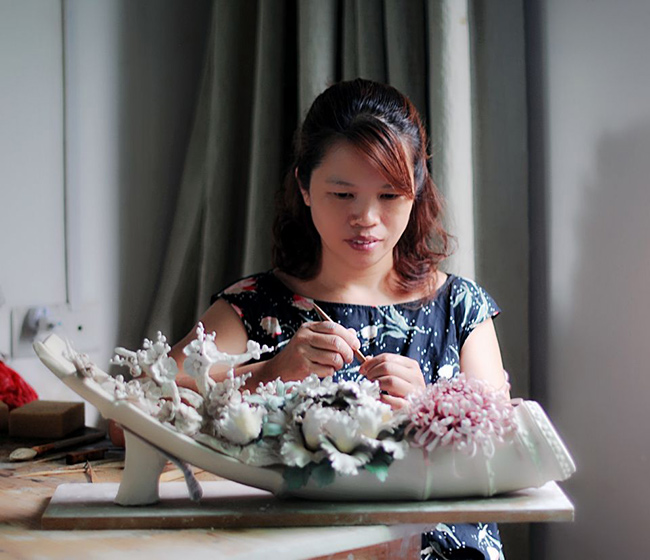 蘇麗華,漢族,1975年生于中國(guó)瓷都德化,中國(guó)陶瓷藝術(shù)家、工藝美術(shù)師、陶瓷雕塑技師,中國(guó)工藝美術(shù)學(xué)會(huì)會(huì)員、中國(guó)陶瓷工業(yè)協(xié)會(huì)會(huì)員、泉州市工藝美術(shù)協(xié)會(huì)會(huì)員、德化瓷花制作工藝傳承代表性人物,“雅丹藝瓷”品牌總設(shè)計(jì)師,現(xiàn)任福建省德化雅丹藝瓷總經(jīng)理、藝術(shù)總監(jiān)。