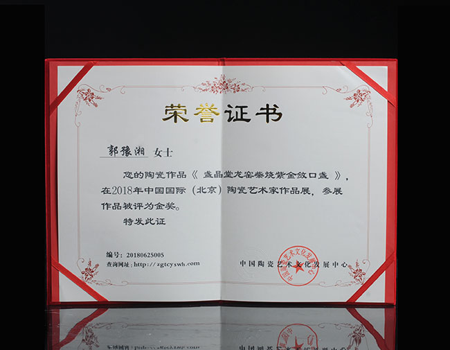 作品《盞晶唐龍窯柴燒紫金斂口展》榮獲北京陶瓷藝術(shù)作品展金獎(jiǎng)