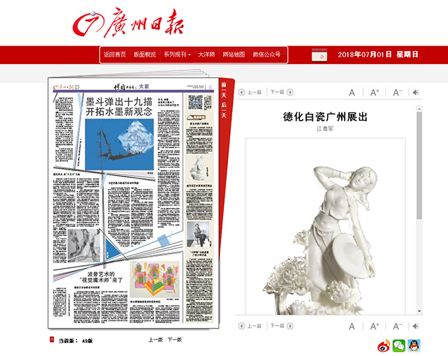 此次展覽得到了廣州日報、廣州電視臺、南方日報/奧一網(wǎng)、廣州荔灣發(fā)布(區(qū)委宣傳部)、南方都市報、新快報、廣東文化網(wǎng)、中華陶瓷網(wǎng)、東方頭條、搜狐網(wǎng)、掌中廣視、廣州工美第一福、網(wǎng)易新聞等媒體關注報道。