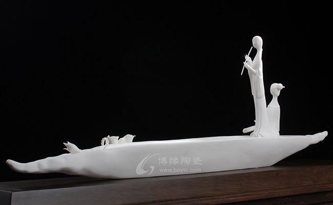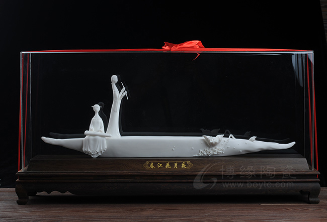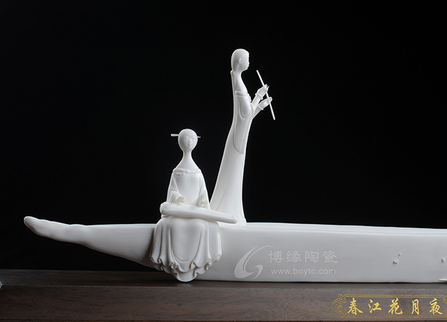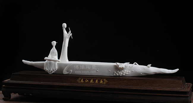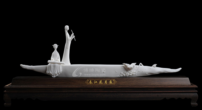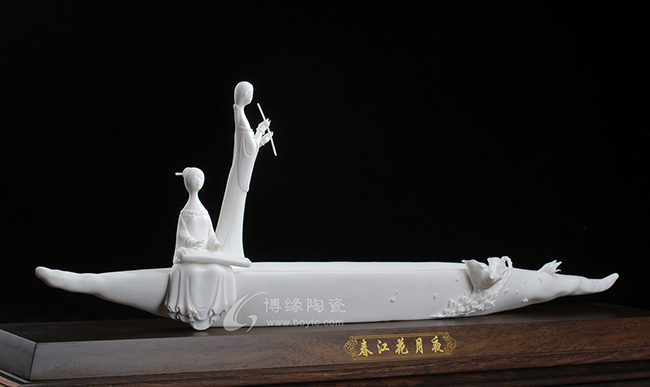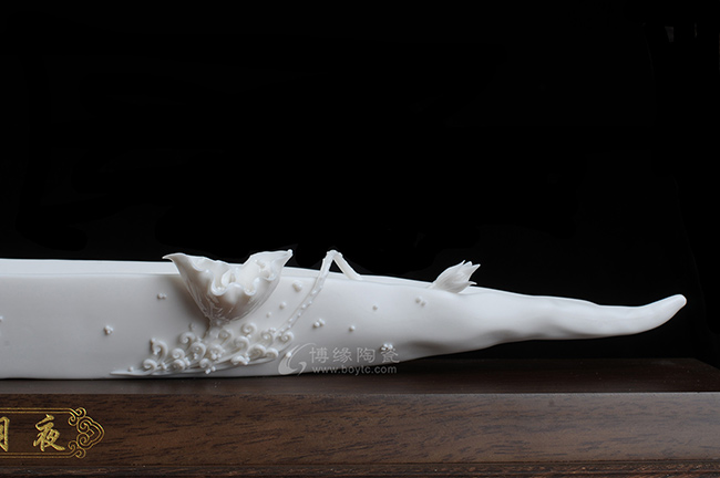 作品《春江花月夜》帶著濃濃的古典詩情意境,作者用白瓷藝術勾勒出一幅春江月夜的壯麗畫面:江潮連海,月共潮生,泛舟春江上,一曲長笛聲悠悠。