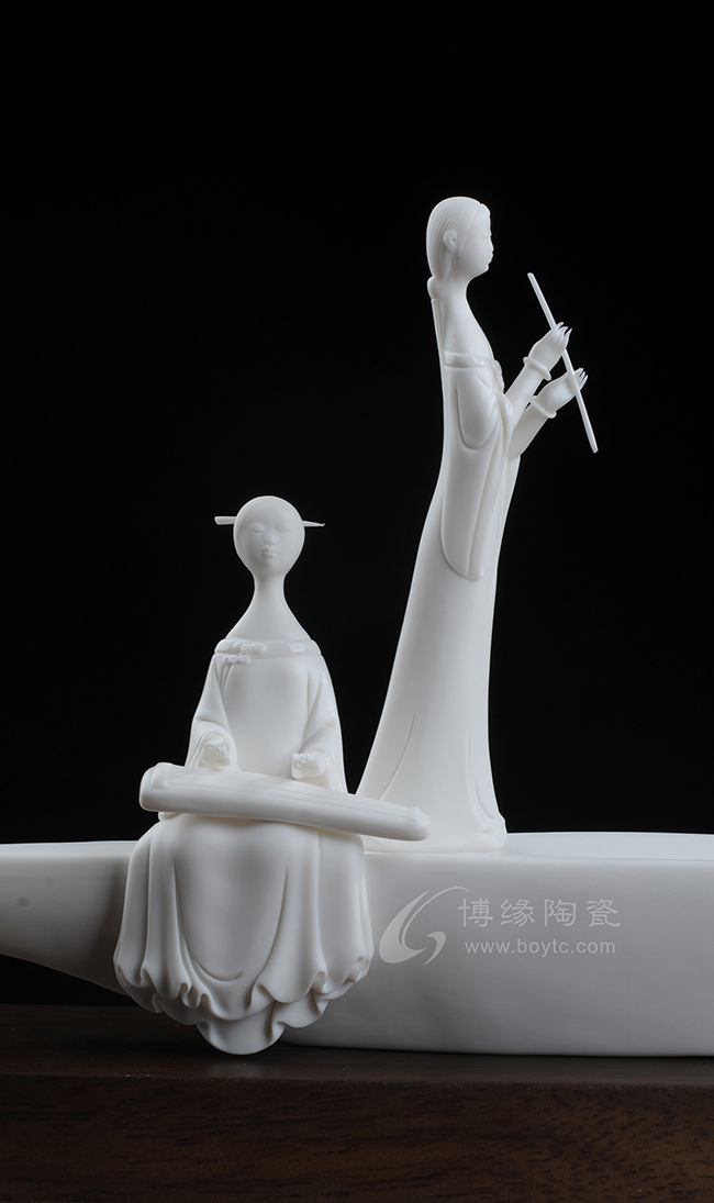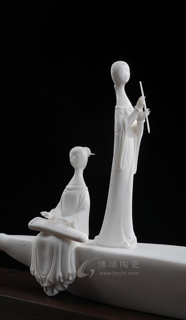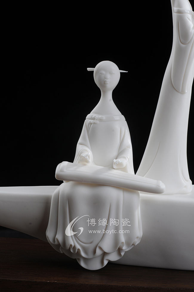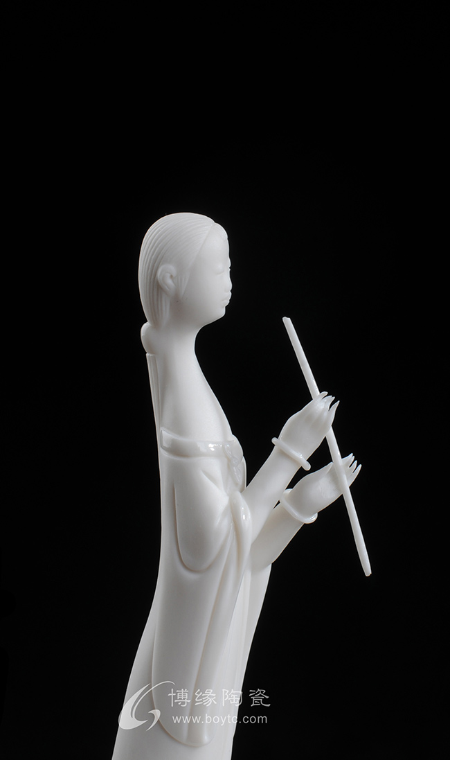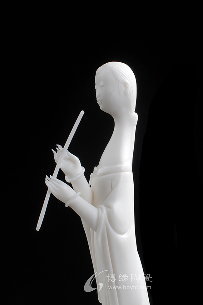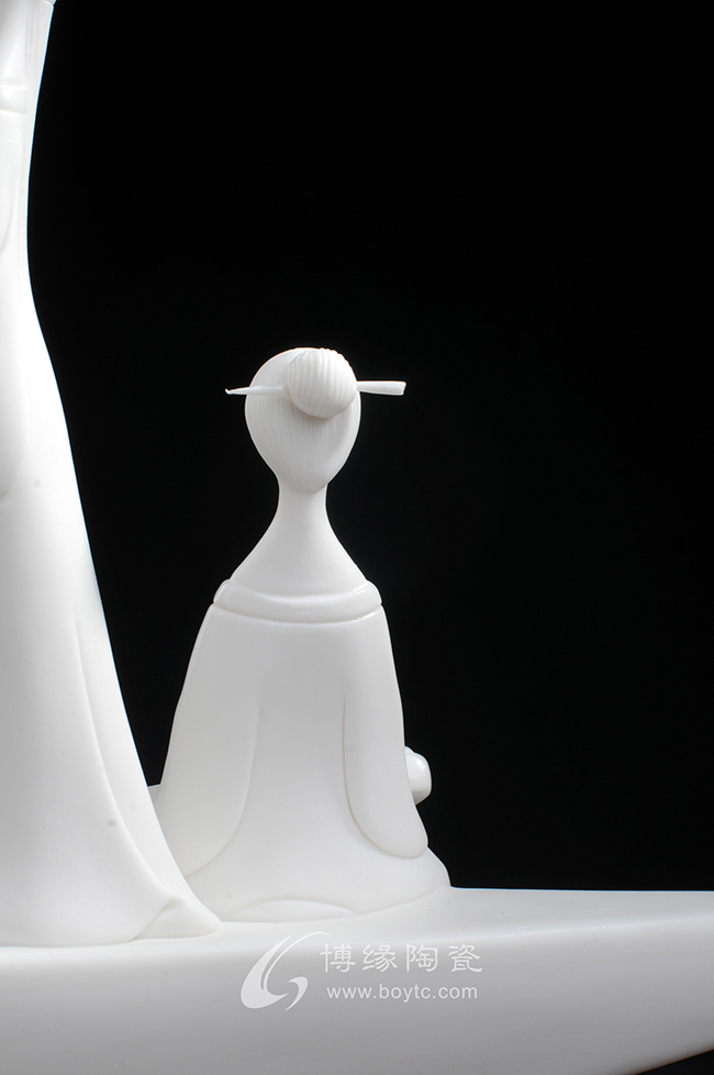 作品瓷質細膩,工藝精湛。女子神采婀娜,嬌羞動人,如清風明月般自然舒心。