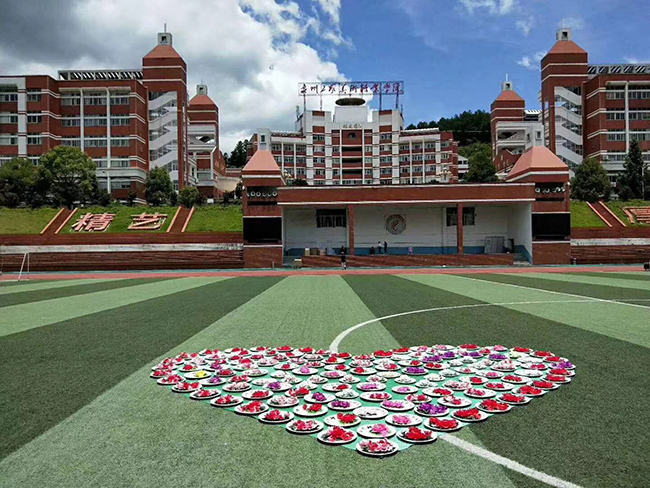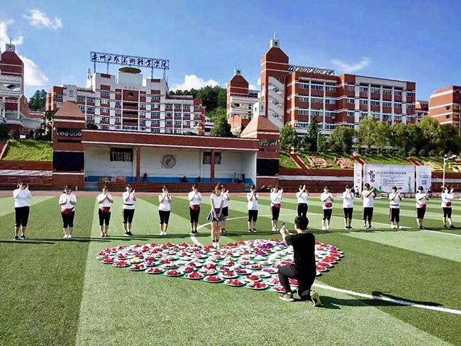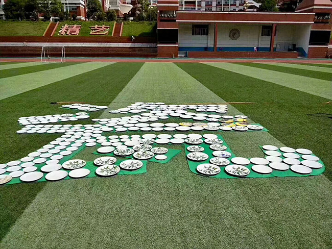 本次活動(dòng)的主題“瓷愛一生”,“瓷愛”兩字,用瓷盤520個(gè)組成,“一生”兩字用陶瓷壺1314個(gè),象征一生一世,一生幸壺(福)。