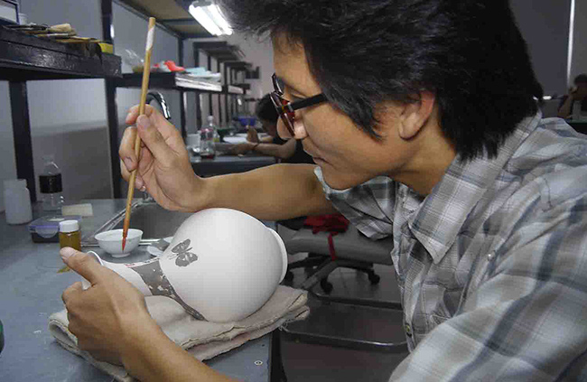 陶藝師現(xiàn)場創(chuàng)作陶瓷藝術(shù)品