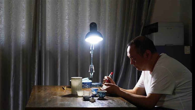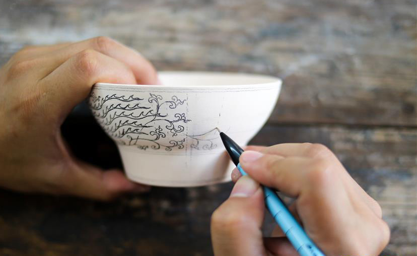 團(tuán)隊(duì)成員堵星宇在設(shè)計(jì)瓷器圖案