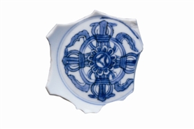 明清瓷畫中有一種“十字杵”紋樣存世量相當(dāng)大。這種紋樣與中國傳統(tǒng)文化似乎毫不相干,卻總是出現(xiàn)在瓷器盤、碗內(nèi)底這個重要的中心位置,因而帶有濃厚的神秘色彩。它的原型來自哪里?它在瓷器紋樣世界里,又意味著什么?