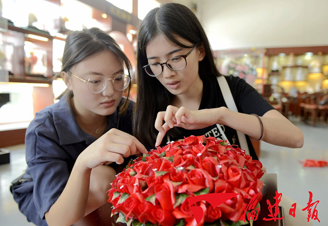 師徒幾人用一雙巧手捏塑出一朵朵精致的玫瑰花,用獨特的陶瓷技藝紀念牛郎織女的民間傳說,以此倡導(dǎo)男女情感忠貞、家庭和美的社會風(fēng)氣。