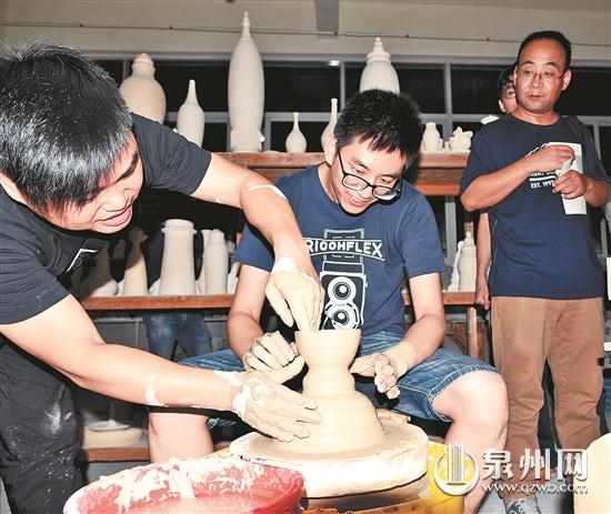 游客在手拉坯創(chuàng)作中體驗德化“走出去”的陶瓷文化 。