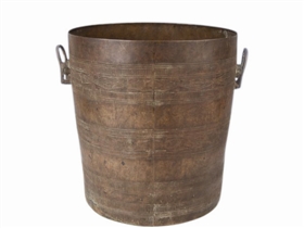 這件西漢時期勾連雷紋銅桶(見圖),高36、口徑34、底徑30.2厘米,是1976年貴縣(今貴港市)羅泊灣1號墓出土,現(xiàn)藏于廣西壯族自治區(qū)博物館。