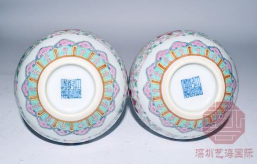 粉彩是乾隆朝瓷器中所占此重較大的品種之一,在雍正瓷的基礎上又有新的突破。乾隆粉彩中的一部分繼承了雍正時期在肥潤的白釉上繪疏朗艷麗紋飾的特點,如常見的折枝花卉盤、碗、小瓶、面盆、人物筆筒和大件器物鹿頭尊等,且除白地繪粉彩外,還有色地粉彩或色地開光中繪粉彩等品種。另外,還有部分在粉彩瓷器的內壁及底足內施綠彩,俗稱綠里綠底,此樣式一直流行到清末、民國。