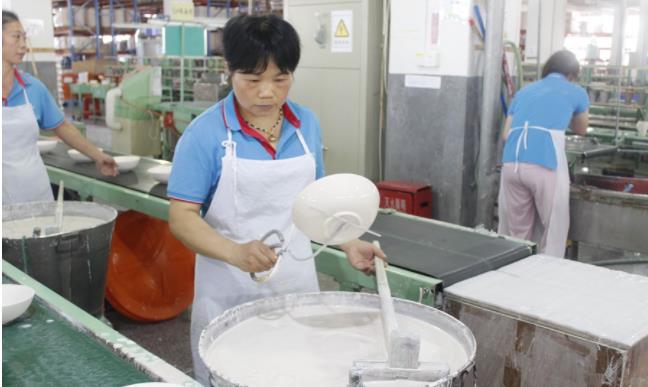 德化協(xié)發(fā)光洋的生產(chǎn)車間內(nèi),工人們正在搖釉。