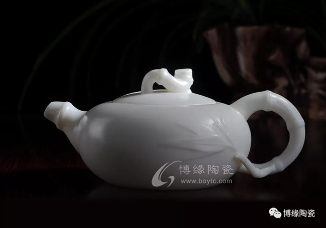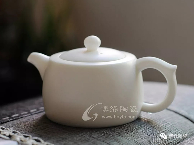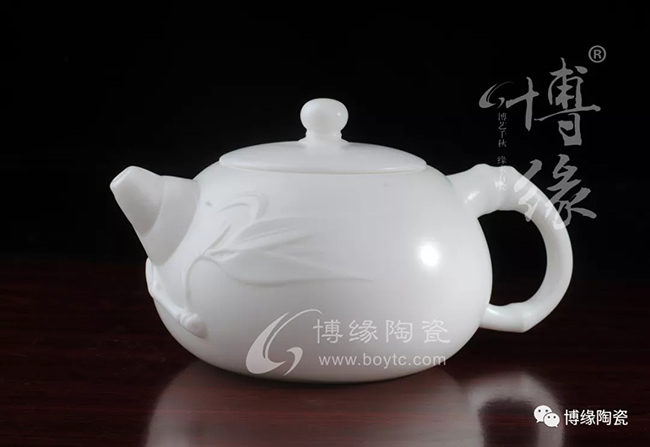 德化白瓷壺隨著德化白瓷產(chǎn)品種類的發(fā)展應(yīng)運(yùn)而生,瓷質(zhì)作乳白色,兼有雕塑藝術(shù)的陳設(shè)瓷壺,多用貼花、印花、堆花作裝飾,受到人們的青睞。