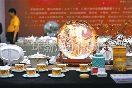 作品《重生》由設計師趙躍設計。作品中騰飛的鳳凰采用特殊工藝來實現(xiàn)其身體在順光與逆光情景中的光變效果;波光粼粼的湖水波紋在浮雕工藝中得以立體的展現(xiàn);點綴在整幅畫面中的亮金,在陽光的映射下閃耀奪目;產(chǎn)品各器型的金邊均通過精心處理,減少在日常使用中的磨損;為了能更好地延伸畫面的寓意,載體選用了世界公認的高檔瓷種——唐山骨瓷。“看這道藍色條紋,設計靈感就來自咱唐山的環(huán)城水系。”高繼輝拿起一個咖啡杯介紹說。