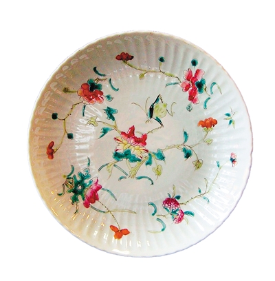 清蟲草紋細(xì)路粉彩碗