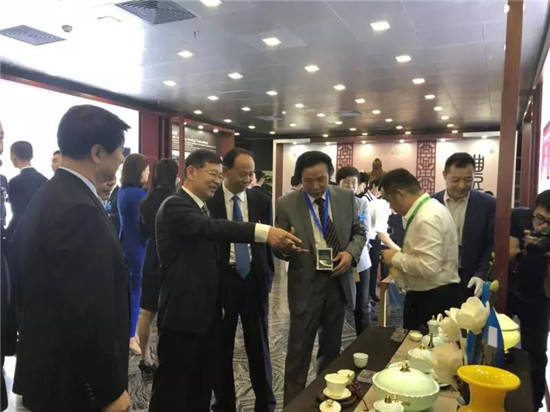 市委書記周連華到推介會現(xiàn)場查看淄博陶瓷展臺