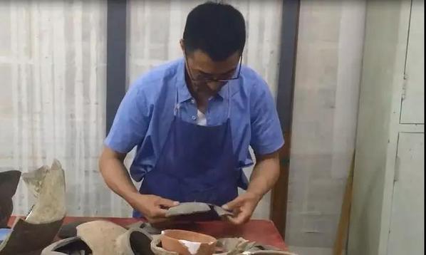 “是這片......不是,是這片?”古陶瓷修復(fù)師高貴林穿著藍色圍裙,扶著眼鏡,瞇著眼坐在臺燈下,一片片對比著陶片,將碎片從麻袋中挑出。找出的碎陶片,他要經(jīng)過簡單還原、再拆解、清洗、粘接、填補、做色、做釉,才能完整修復(fù)。從1996年開始接觸古陶瓷修復(fù),高貴林就徹底愛上了這項“磨心”的工作,在這之前,高貴林學(xué)的是音樂專業(yè)。“雖然我也喜歡音樂,但那時,我就想找一個能磨煉自己的行業(yè)。”