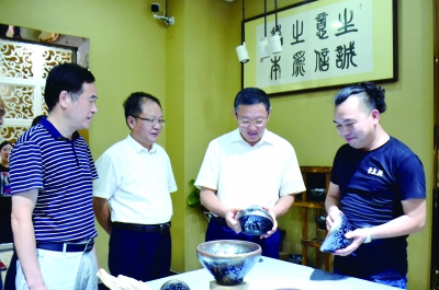 ▲ 南平市委書記袁毅(右二)調研建陽建盞文化產業(yè)發(fā)展,南平市委常委、宣傳部長張培棟(左二),建陽區(qū)委書記楊新強(左一)陪同調研。