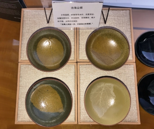 靜象的木葉瓷器也突破性地實(shí)現(xiàn)了多色系的藝術(shù)表達(dá)。靜象文化團(tuán)隊(duì)中,具有十年木葉盞燒制經(jīng)驗(yàn)的景德鎮(zhèn)青年匠人文丘,在帶領(lǐng)團(tuán)隊(duì)進(jìn)行創(chuàng)新燒制的過(guò)程中,探索出靜象木葉瓷器獨(dú)特的色彩: 冰藍(lán),敦煌,茶葉沫,柿子紅……一件件新作品問(wèn)世,賦予了這門古老技藝多姿多彩的靈魂。