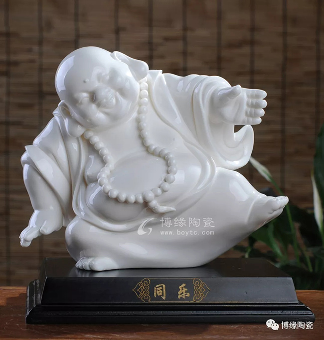 中國瓷塑彌勒佛是中國廣大人民群眾在漫長的社會實踐中,參照我國早期引進(jìn)的印度彌勒佛,依據(jù)唐末浙江奉化契此和尚的形象以瓷塑藝術(shù)塑造的地地道道的中國自己的彌勒佛。