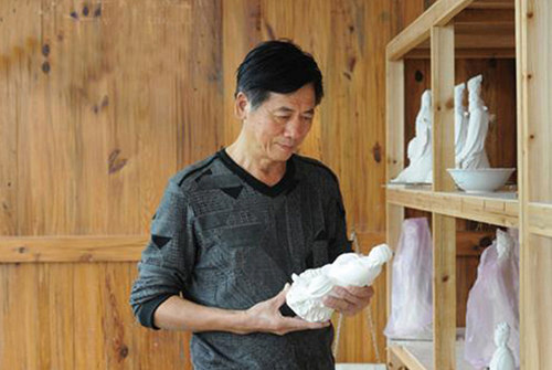 “孩兒紅”屬明代德化窯的極品,是古代一種燒成工藝上無法控制且要在一定氣氛下,偶然產(chǎn)生的稀珍。成品釉色白中蘊(yùn)紅,瑩瑩粉嫩如同嬰兒肌膚,被世界古陶瓷界和收藏界視為堪比最頂端、最高貴的鉆石品種。清康熙后,“孩兒紅”逐漸失傳,已成絕響,數(shù)百年才復(fù)生。德化民間藝人李建水經(jīng)過二十多年探索,上萬次反復(fù)試驗得以成功,將千年歷史長河中的那抹紅重現(xiàn)世人。