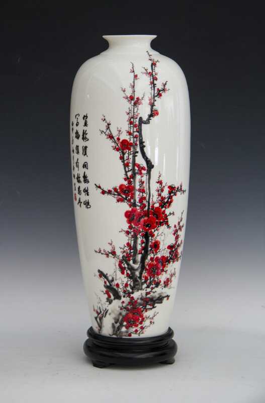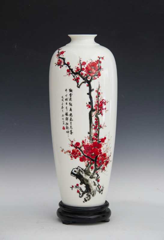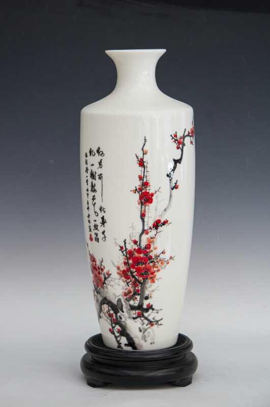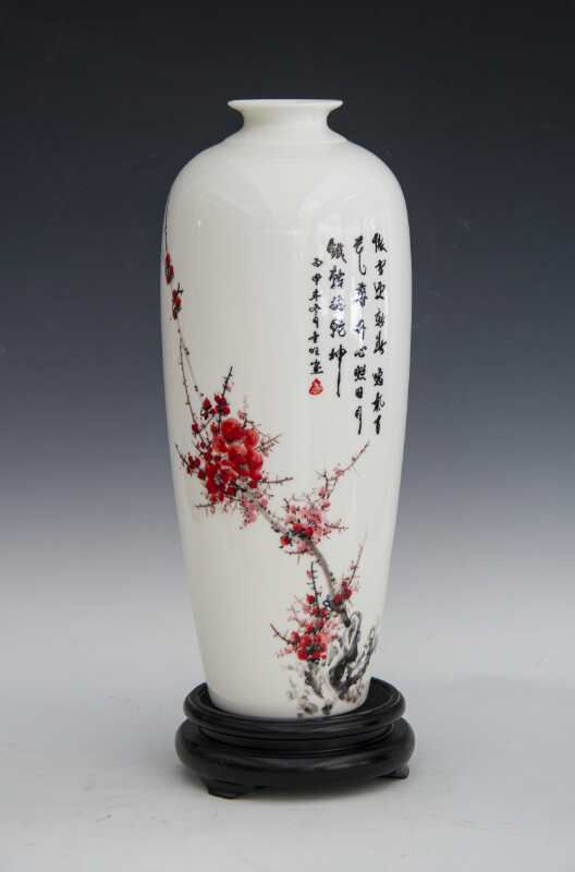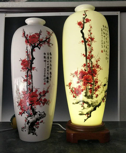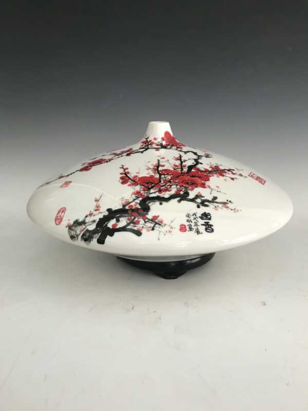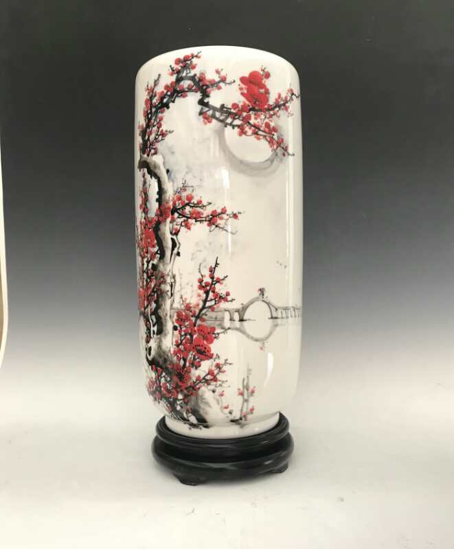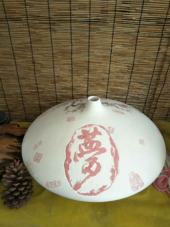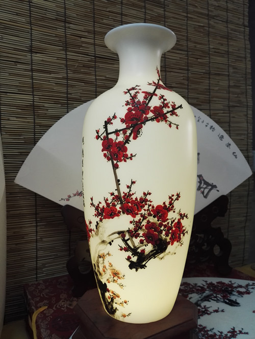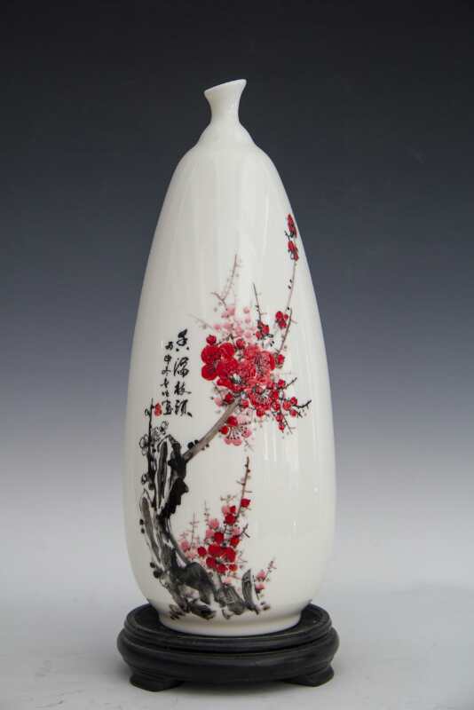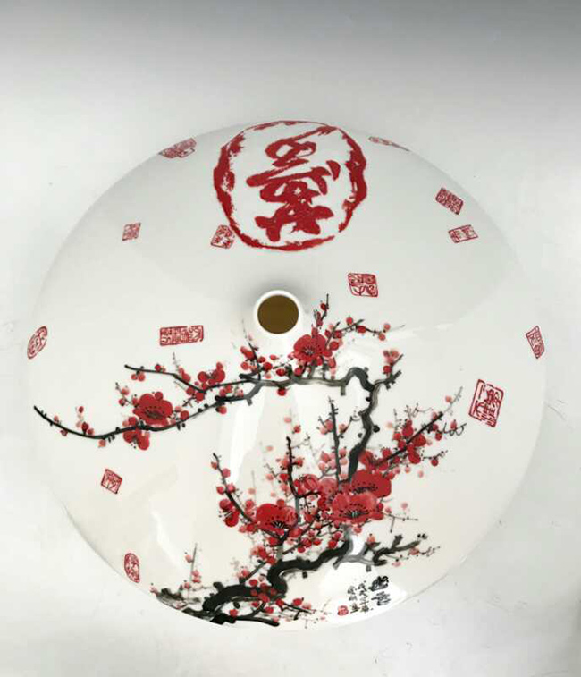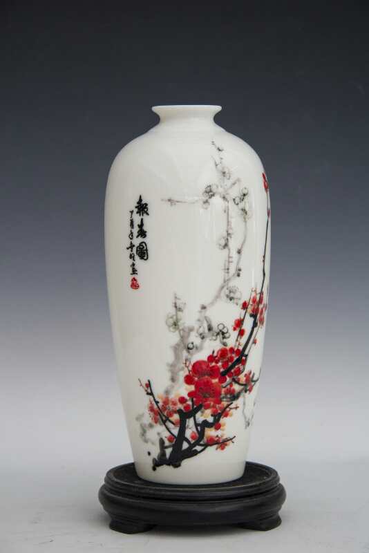 從大學(xué)畢業(yè)至今,醉心于具有不屈不饒,傲雪欺霜的國(guó)畫梅花。傾心研究出釉下彩“凹凸”畫法,經(jīng)過上千次實(shí)驗(yàn),克服了胎體色料、釉水不相容,色料容易起泡、脫落的種種困難,終于研究出晶瑩剔透,光亮照人的釉下彩梅花,使釉下彩梅花極具凸出感(凸出厚度達(dá)兩毫米)。打破了釉下彩“寧平不凸,寧薄不厚”的傳統(tǒng)畫法,填補(bǔ)了釉下彩技法空白。