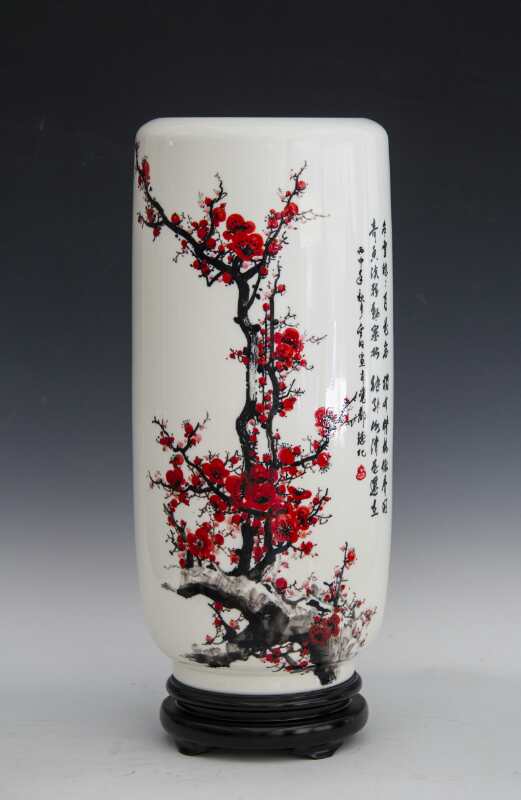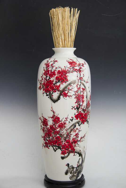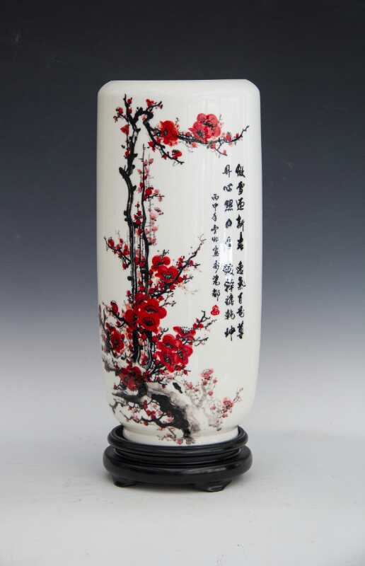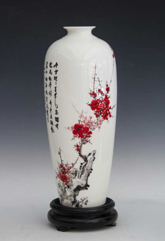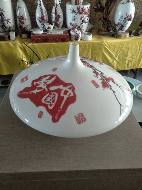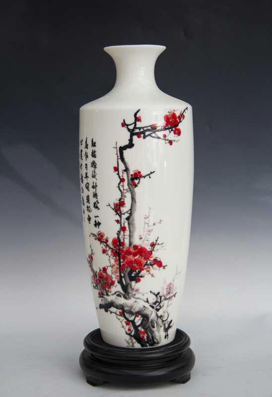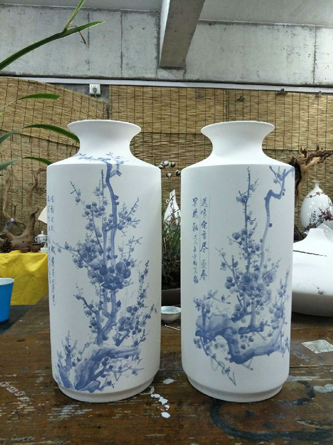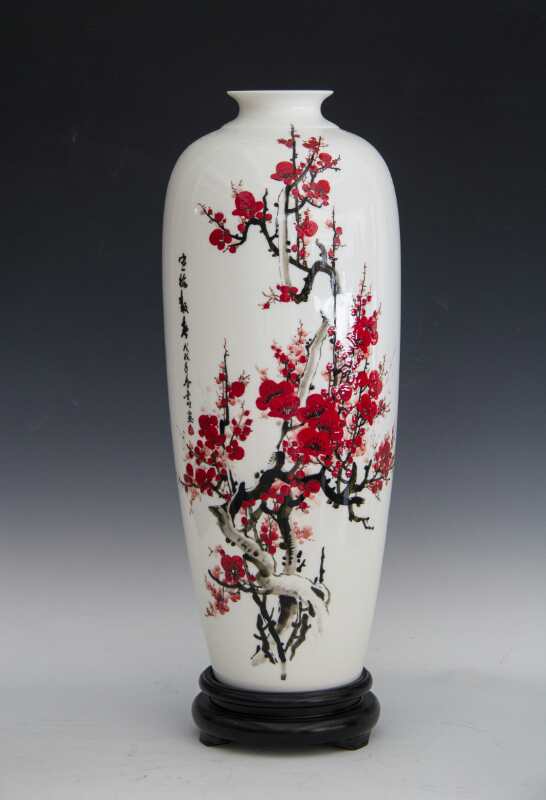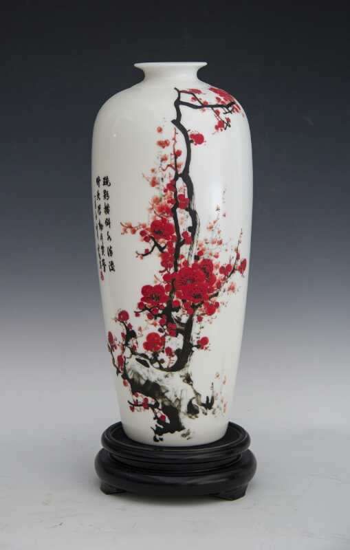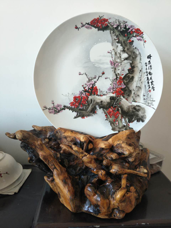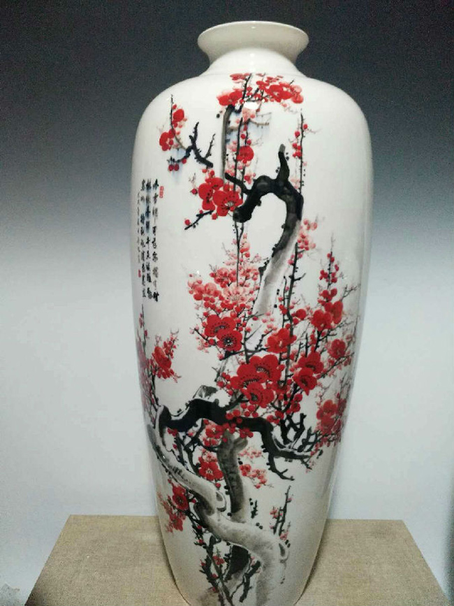 從大學(xué)畢業(yè)至今,醉心于具有不屈不饒,傲雪欺霜的國(guó)畫梅花。傾心研究出釉下彩“凹凸”畫法,經(jīng)過上千次實(shí)驗(yàn),克服了胎體色料、釉水不相容,色料容易起泡、脫落的種種困難,終于研究出晶瑩剔透,光亮照人的釉下彩梅花,使釉下彩梅花極具凸出感(凸出厚度達(dá)兩毫米)。打破了釉下彩“寧平不凸,寧薄不厚”的傳統(tǒng)畫法,填補(bǔ)了釉下彩技法空白。