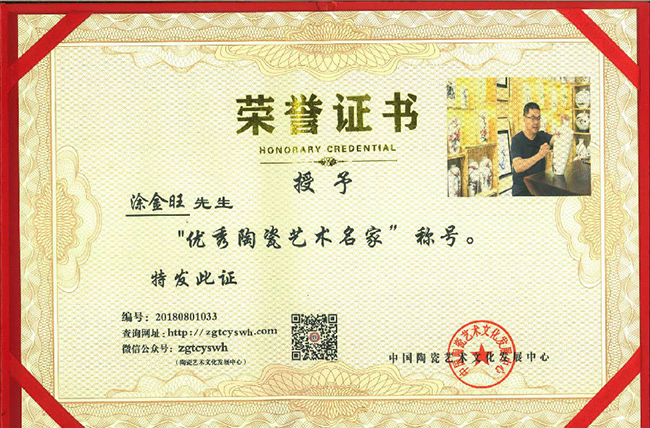 2015年11月參加泉州市陶瓷行業(yè)彩繪比賽獲得第二名,同時(shí)被授予泉州市技術(shù)能手;