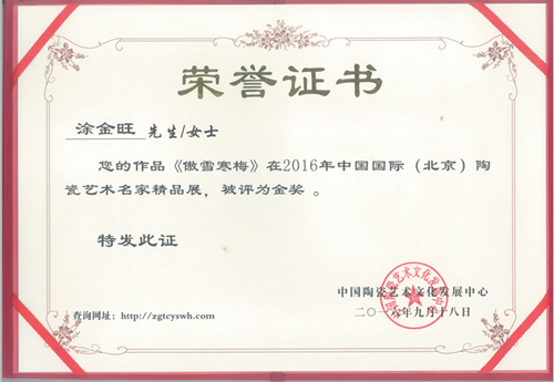 2015年4月,梅花作品《郁香催春》獲得“深圳.金鳳凰”工藝品創(chuàng)新設(shè)計(jì)獎(jiǎng)作品評(píng)選優(yōu)秀獎(jiǎng);