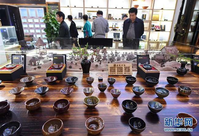 10月29日,游客在建陽建盞一條街參觀建盞。