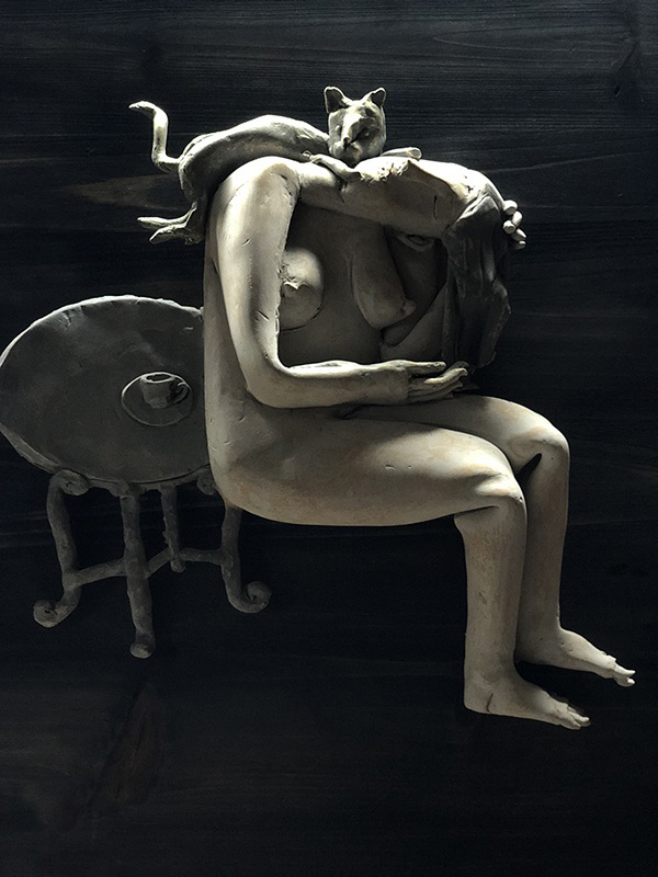 教師張麗芬《女人與貓系列》——現(xiàn)代陶藝類銀獎
