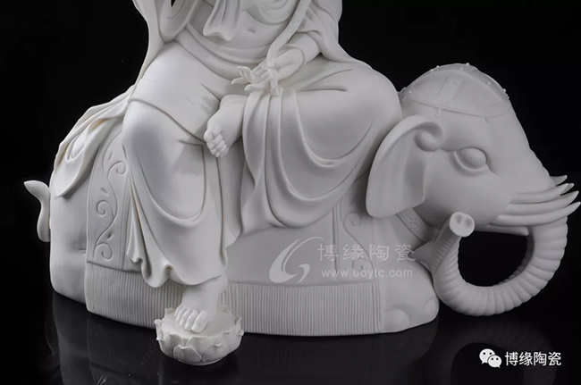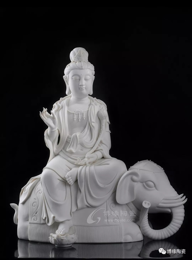 即是說普賢菩薩依深菩提心所起廣大弘深誓愿,及身、口、意悉皆清凈,遍盡一切處,純一妙善,具備大德,所以尊名為“普賢”。普賢菩薩代表一切諸佛的理德與定德,他的坐騎為六牙白象,六牙代表六種清靜,四足代表四種功德。