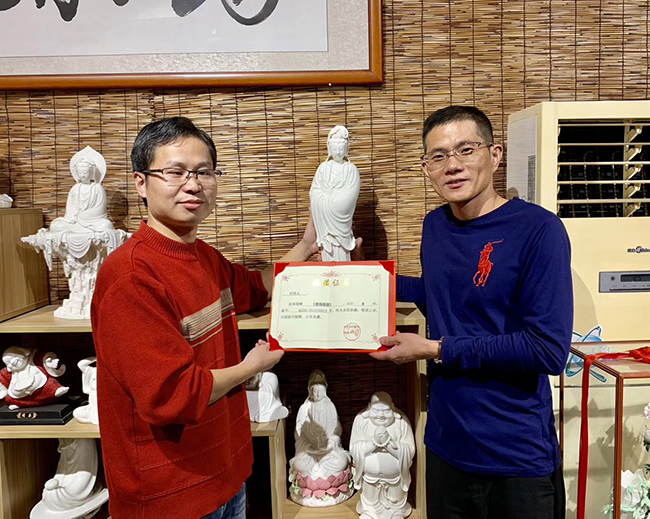 柯維太,1983年12月出生于“世界陶瓷之都德化”,中國青年陶瓷藝術(shù)家、福建省工藝美術(shù)師、中國陶瓷工業(yè)協(xié)會會員、福建省商務(wù)禮品協(xié)會常務(wù)理事、德化縣博緣陶瓷文化有限公司總經(jīng)理兼藝術(shù)總監(jiān)。