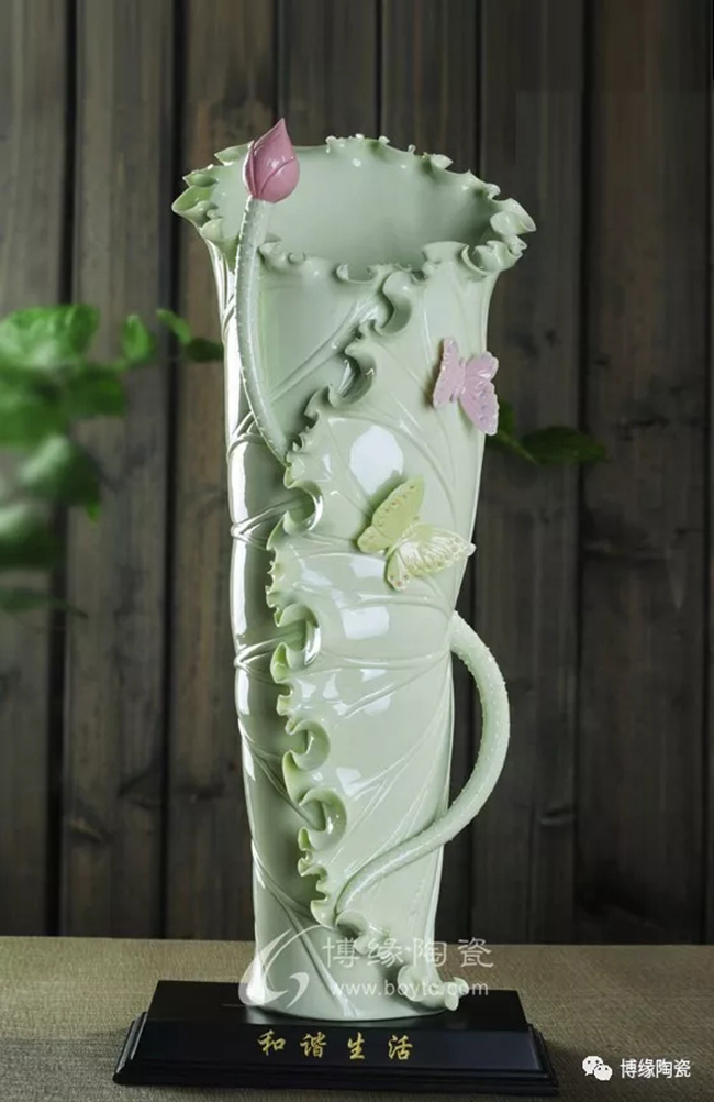 當(dāng)代德化的瓷雕大師在繼承何派的洗、捏、雕、鏤、塑、刮、削八種傳統(tǒng)技法,更不斷加以創(chuàng)新。使當(dāng)代德化題材豐富,各種技藝精湛,其中花瓶制作技藝,也是德化陶瓷工藝的一大亮點。