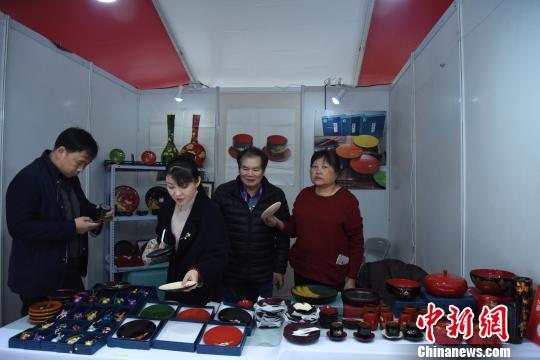 臺灣參展商吳樹發(fā)展示了其手工制作的木質(zhì)繪畫作品,博得不少大陸客商的青睞!