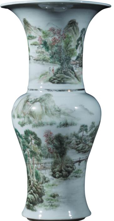 民國(guó)淺絳山水尊