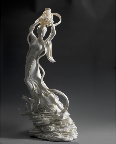 德化瓷塑早期為堆塑成型,明代發(fā)展為模印成型,民國開始注漿成型,今以注漿成型為主。瓷胎最厚者為堆塑,先實(shí)心雕塑然后掏空,因“厚則綻裂”、“十窯九敗”之故,堆塑漸被淘汰。今泰峰瓷坊,究天人之際,通古今之變,歷千次之試驗(yàn),燒實(shí)心之瓷塑,超古人之厚胎,成一家之“瓷”。