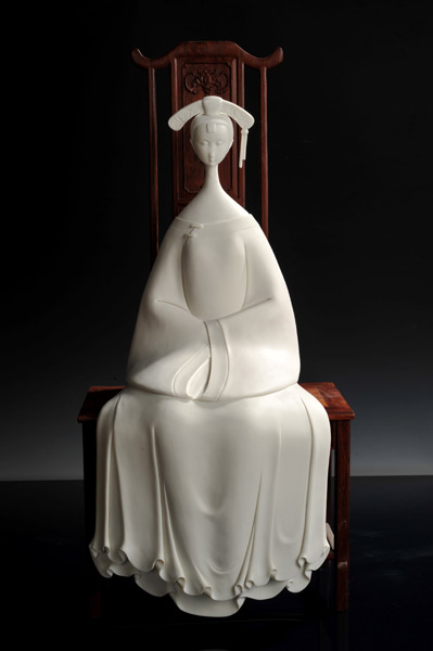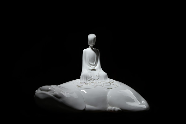 或許是感覺到德化瓷藝需要新的突破,在創(chuàng)作了大量宗教題材的作品后,蘇獻(xiàn)忠第一次否定了自己,于是他報名參加了德化縣與中央工藝美術(shù)學(xué)院聯(lián)辦的藝術(shù)進(jìn)修班。進(jìn)修回來,蘇獻(xiàn)忠立即投身創(chuàng)作“百戲”系列,以現(xiàn)代雕塑語言表達(dá)漢代百戲的神韻。那一時期,他始終在探索,如何從傳統(tǒng)文化中挖掘出一些現(xiàn)代元素,接連做了女性題材的“江南”系列和“水滸”系列,深受廣大收藏愛好者的喜愛。