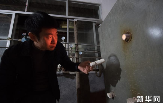 1月15日晚,陳衛(wèi)武在燒窯期間查看窯內(nèi)情況。