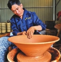 福建省建甌市北苑皇綱工藝廠工人采用傳統工藝仿制大型建盞。新華社發(fā)