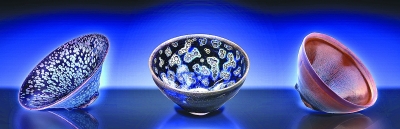 從左向右依次為宋代油滴建盞、宋代曜變建盞、宋代兔毫建盞。光明圖片