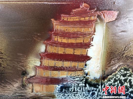 圖為主題為莫高窟九層塔的瓷板畫作品