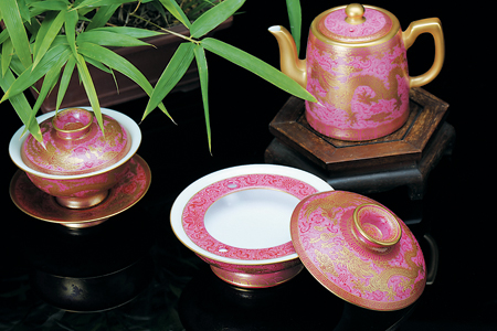 景德鎮(zhèn)豐窯澐知味陶瓷文化有限公司以胭脂紅和皇家藍(lán)產(chǎn)品為主打,衍生出青花、粉彩、描金、軋道等多種獨(dú)門工藝,據(jù)了解,胭脂紅瓷器創(chuàng)燒于清康熙末年,雍正、乾隆、嘉慶、光緒等朝均有燒造,其中以雍正朝產(chǎn)量最大,質(zhì)量最精。它是一種以微量金(Au)作著色劑,在爐內(nèi)經(jīng)800℃左右烘燒而成的低溫紅釉。這種紅釉頗如婦女化妝用的胭脂之色,故又名“胭脂紅”。