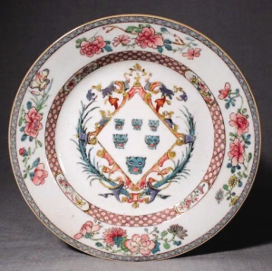 紋章瓷是外銷瓷中的一個特殊種類,始于16世紀,于18世紀達到頂峰,因器物表面直接繪有家族徽章圖案而得名,是由中國工匠按照歐美訂購商所提供的品種、造型、紋飾圖案進行彩繪燒制而成,屬于“來樣加工”的定制瓷器。與普通的貿(mào)易外銷瓷不同,紋章瓷是為具有特殊身份的皇室成員、政府官員、豪紳貴族、特殊協(xié)會或公司所定制的,制作上最為精美,在當時歐美屬于頂級奢侈品,堪稱外銷瓷中的“官窯”。